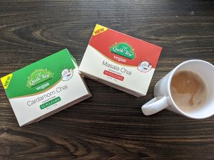 I am so glad that there are over 5 companies which make vegan chai and all are incredible in taste. Below is one which is available in many Indian grocery stores in the USA, also available online on the Quick tea website.